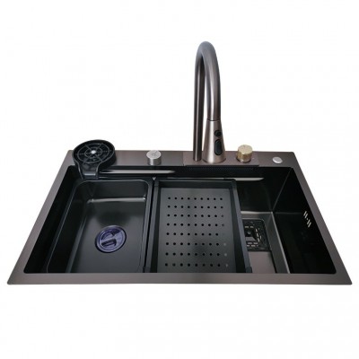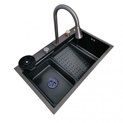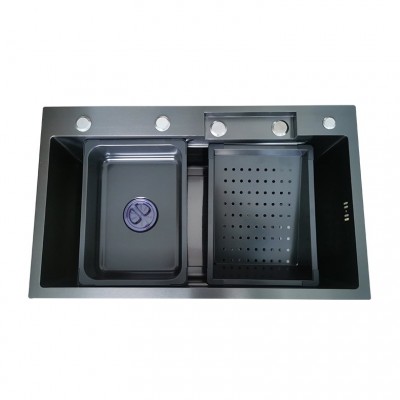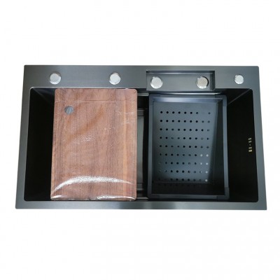 外形尺寸黑色7545(双孔飞雨龙头+葫芦下水器+黑色盆中盆+三角篮+菜板),枪灰色7545(双孔飞雨龙头+葫芦下水器+枪灰盆中盆+三角篮+菜板)颜色灰色