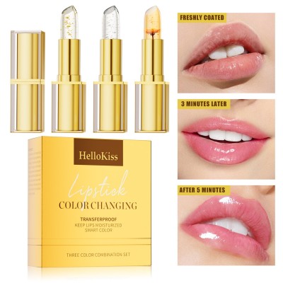 自然温变三支装金箔口红套装 保湿滋润鲜花变色唇膏