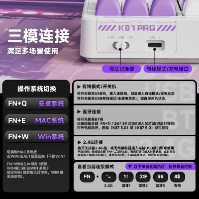 颜色K87pro凌霄悟空【花田轴】8000Ah,K87pro露茜妮尔【花田轴】8000Ah,K87pro艾莉尼娅【花田轴】8000Ah,K87pro塞拉芬娜【花田轴】8000Ah,K87侧刻-草莓粉【烟紫轴】4000Ah,K87侧刻-草莓粉【赤兔轴】4000Ah,K87侧刻-星黛紫【烟紫轴】4000Ah,K87侧刻-微尘灰【烟紫轴】4000Ah主要下游平台ebay,亚马逊,wish,速卖通,独立站,LAZADA