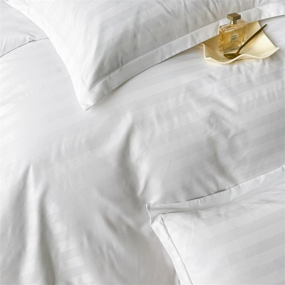 酒店床单被套床上用品四件套纯棉白色三分条宾馆民宿布草床品酒店