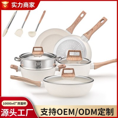 锅具套装不粘锅花岗岩全套家用电磁炉燃气灶通用炒锅12件套