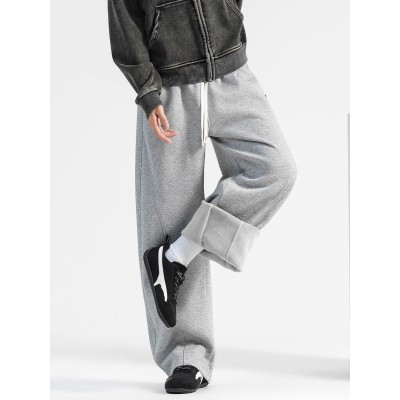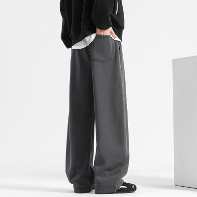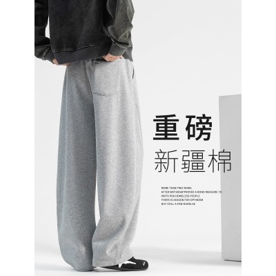 重磅加绒裤子男款加厚秋冬阔腿弯刀卫裤直筒裤冬季新款男士休闲裤