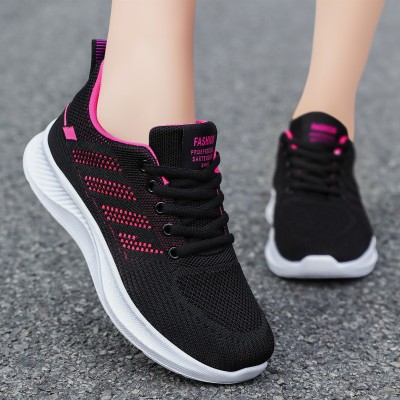 女鞋运动鞋透气休闲软底单鞋春季飞织网面鞋批发代发学生跑步鞋女 时尚女式运动鞋
