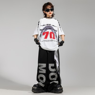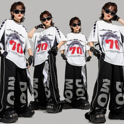 街舞儿童潮透气美式运动短袖长裤架子鼓嘻哈hiphop舞蹈演出服套装