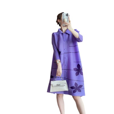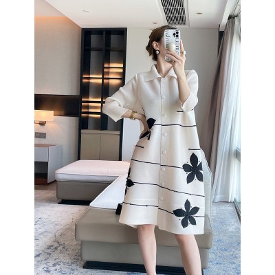 首页 > 男装 / 女装 / 内衣 > 女装 > 连衣裙 > 褶皱2025秋季新款翻领拼色钉珠开衫连衣裙气质优雅显瘦遮肉中长裙