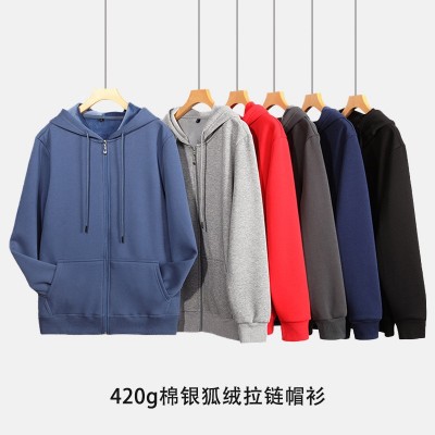 银狐绒拉链帽衫秋冬宽松休闲卫衣加大加绒运动外套