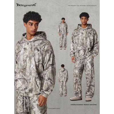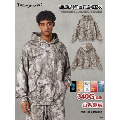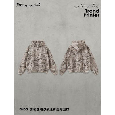 街头制燥|2025秋季欧美跨境街头hiphop加绒连帽衫痞帅迷彩卫衣男