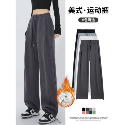 首页 > 男装 / 女装 / 内衣 > 女装 > 休闲裤 > 美式运动裤子女秋冬束脚宽松阔腿裤垂坠感休闲直筒小个子加绒卫裤 美式运动卫裤