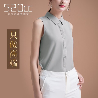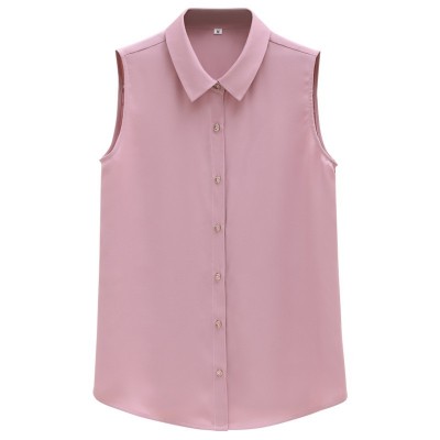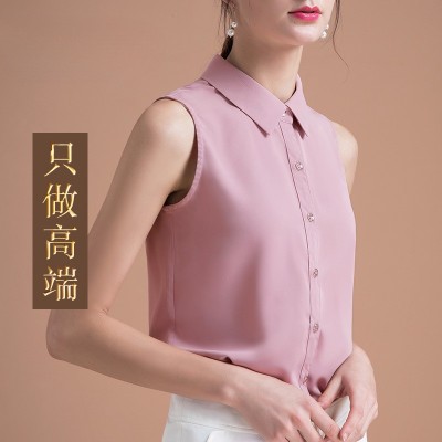 雪纺无袖衬衫女夏季纯色韩版显瘦上衣设计感通勤职业衬衣宽松百搭