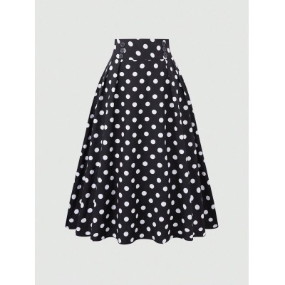 女装亚马逊女士新款时尚优雅高腰波点大摆半身裙